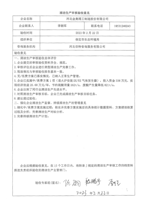 Jinao Seiki continuously upgrades its equipment and processes to cut emissions and boost resource efficiency. Open-flame furnaces are replaced by DX furnaces to reduce CO₂. Air pollutants are removed via a multi-stage system including bag filters, low-NOx burners, and wet scrubbers. All emissions meet standards. Production and domestic wastewater are fully treated and recycled for cleaning, cooling, and landscaping, achieving zero discharge. Waste acid is processed in a closed-loop system to recover ferrous sulfate and reused in pickling, avoiding external discharge.